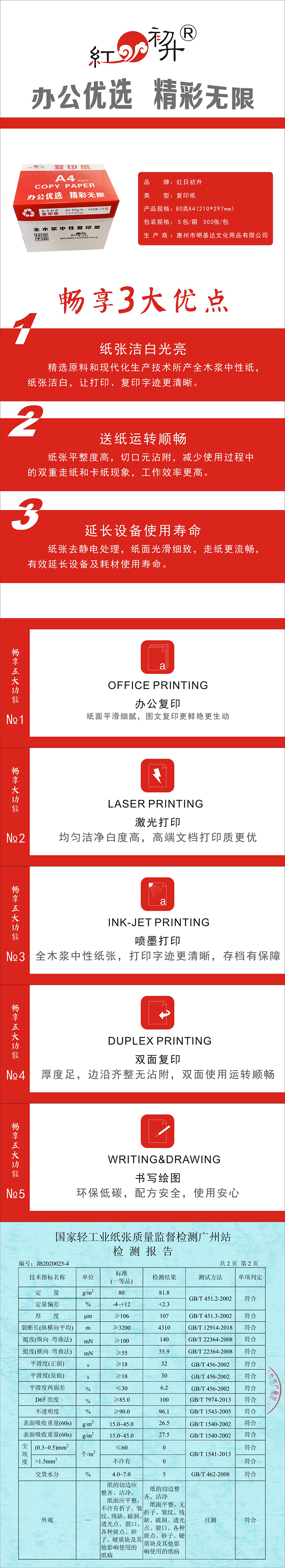 商品名稱:紅日初升 A4 80g 復(fù)印紙 500張/包 5包/箱