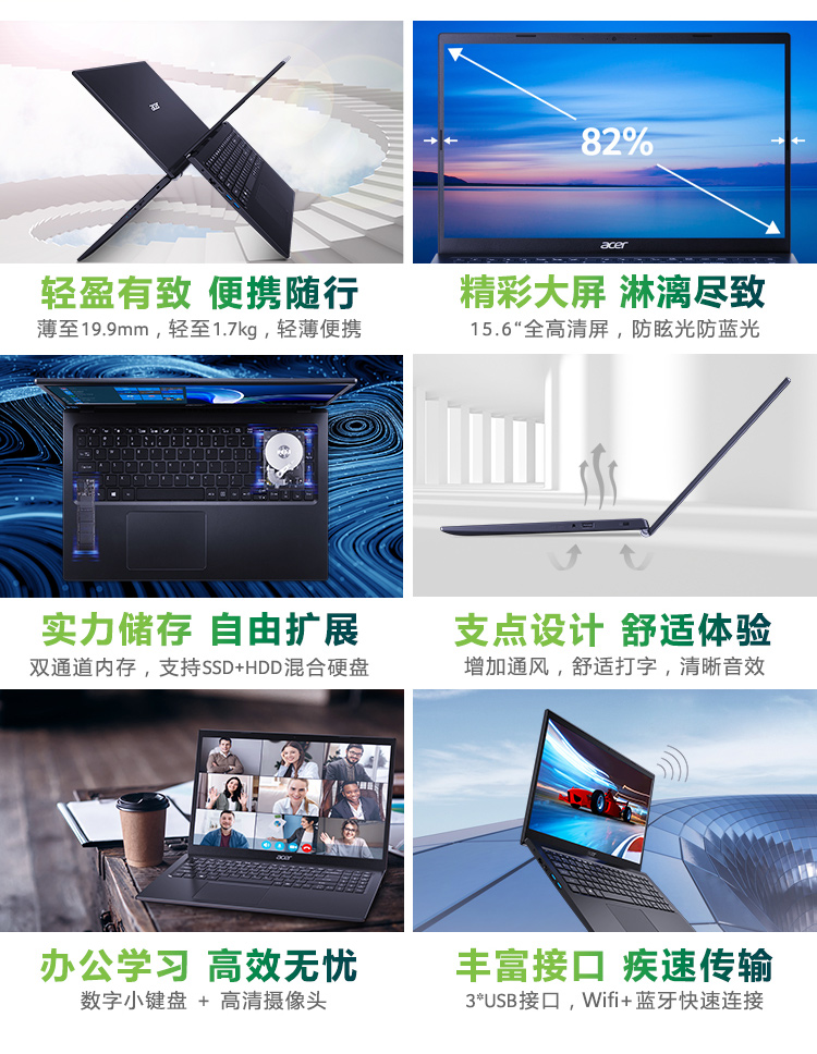 商品名稱:宏碁(Acer)墨舞EX215 15.6英寸輕薄大屏辦公筆記本(英特爾四核N5100 8G 256GSSD 全高清防眩光霧面屏 Win11)