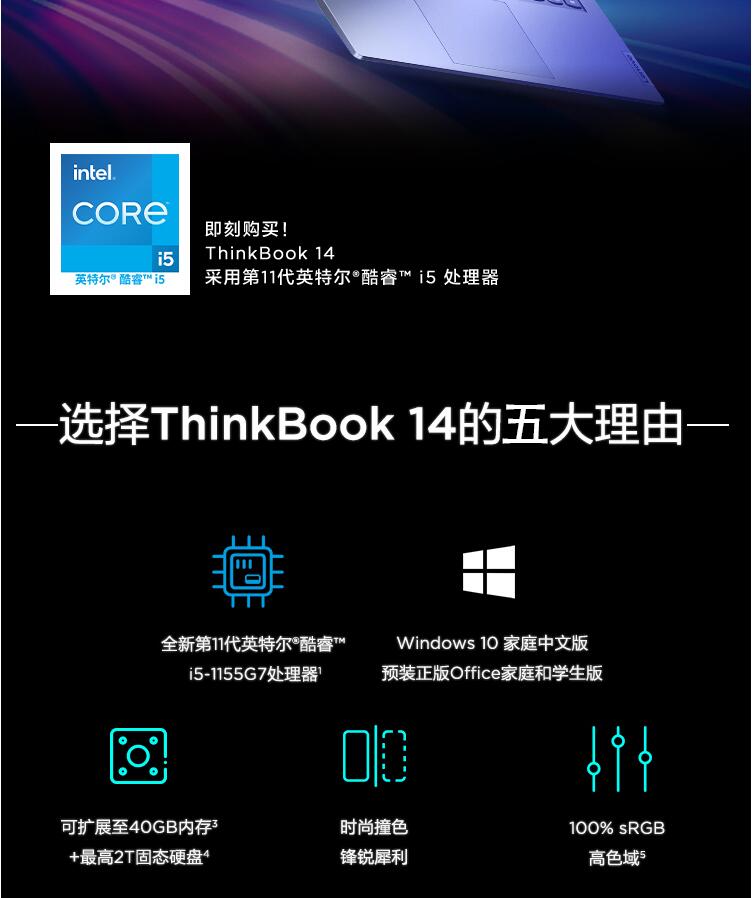 商品名稱:ThinkBook14 21A3000SCD I5-1155G7 16G 512G 集顯 無(wú)光驅(qū) 高色域 W11系統(tǒng)