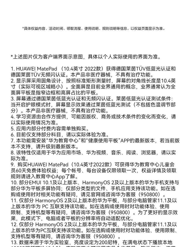 商品名稱:華為HUAWEI MatePad 10.4英寸悅動版 影音娛樂辦公學習 專屬教育中心 全面屏平板電腦6G+128G WIFI 曜石灰