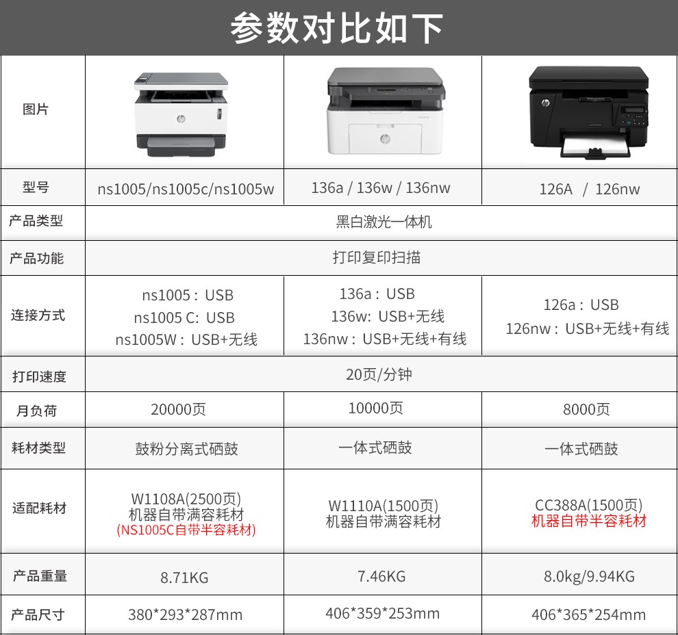 商品名稱:惠普hp 打印機(jī) 1005 1136 126a 136nw 30w A4黑白激光 復(fù)印 掃描 一體機(jī) 136w(升級(jí)款無(wú)線連接)