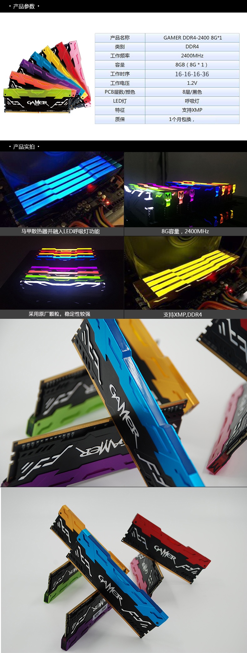 商品名稱:影馳 GAMER DDR4 2400 8G 臺式機(jī)內(nèi)存 內(nèi)存條 燈條 呼吸燈 燈光內(nèi)存 綠色